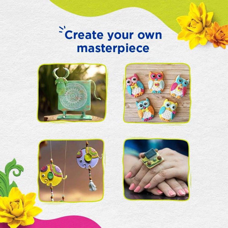 Fevicryl Mouldit is used to mould and create fabulous shapes and 3D works of art like wall hangings, vases etc.