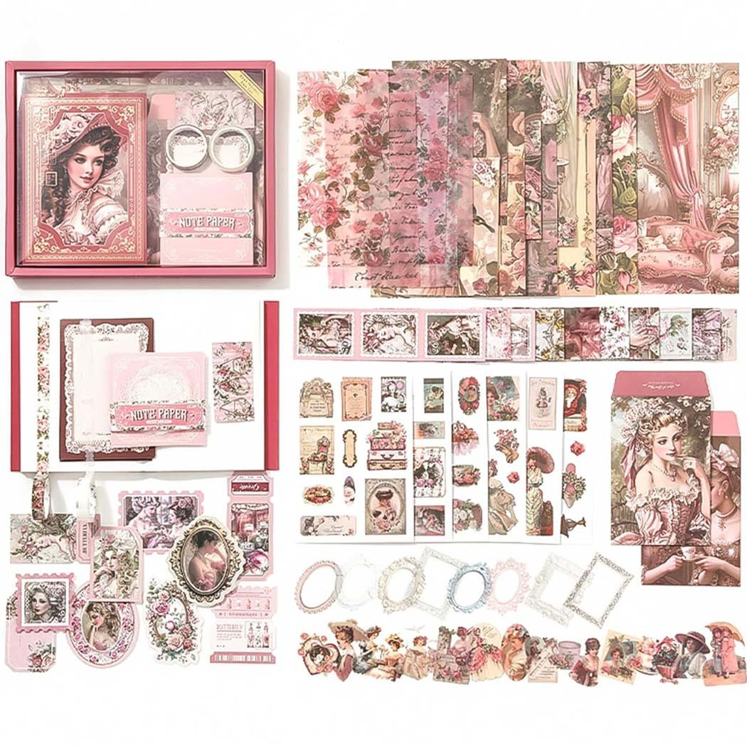 A premium scrapbook journal kit with durable papers, stickers, and accessories—perfect for scrapbooking, journaling, planners, card making, and creative DIY projects. Comes in a beautiful gift box for all occasions.