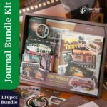 A premium scrapbook journal kit with durable papers, stickers, and accessories—perfect for scrapbooking, journaling, planners, card making, and creative DIY projects. Comes in a beautiful gift box for all occasions.