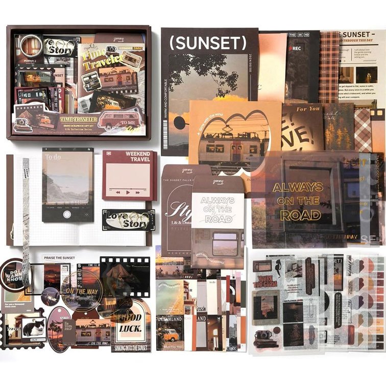 A premium scrapbook journal kit with durable papers, stickers, and accessories—perfect for scrapbooking, journaling, planners, card making, and creative DIY projects. Comes in a beautiful gift box for all occasions.