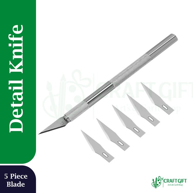 * 5 Replacement Blades 1 Art Knife (with blade) Aluminum Alloy + Stainless Steel